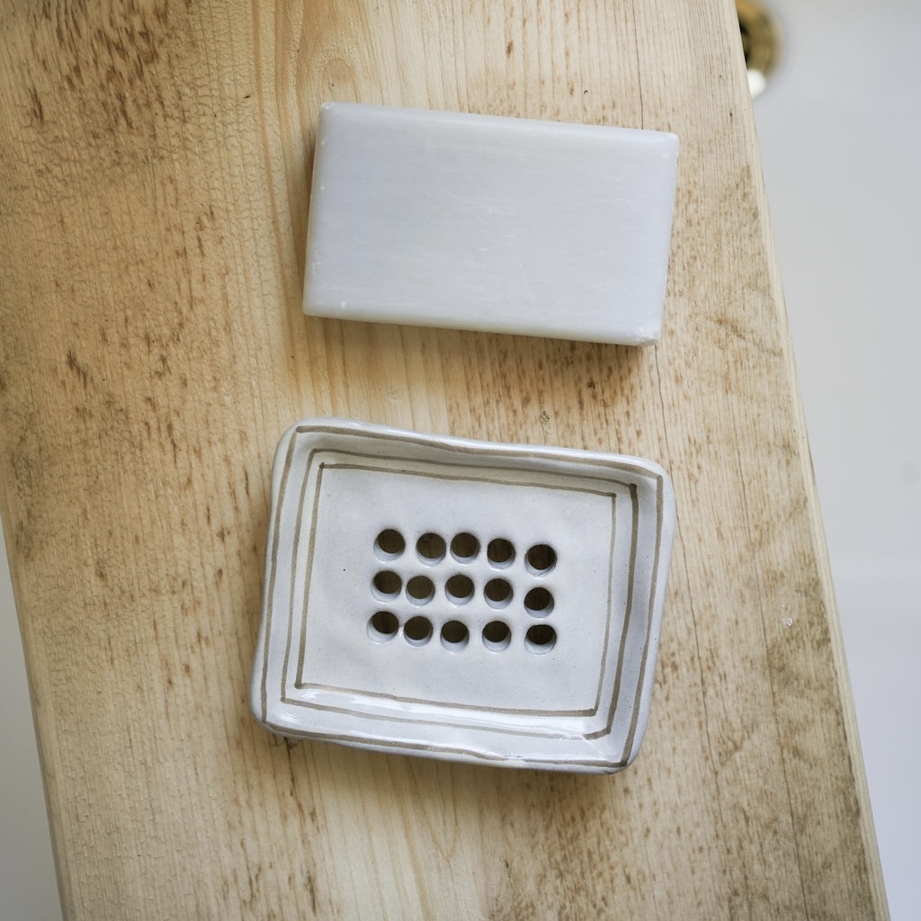 Measuring 10cm x 8cm, it’s perfectly sized for your favourite bar soaps or solid shampoos, and it can also double as a stylish little dish for a wooden dish brush by the kitchen sink. Whether in the bathroom or the kitchen, it’s a versatile piece of thoughtfully made homeware.