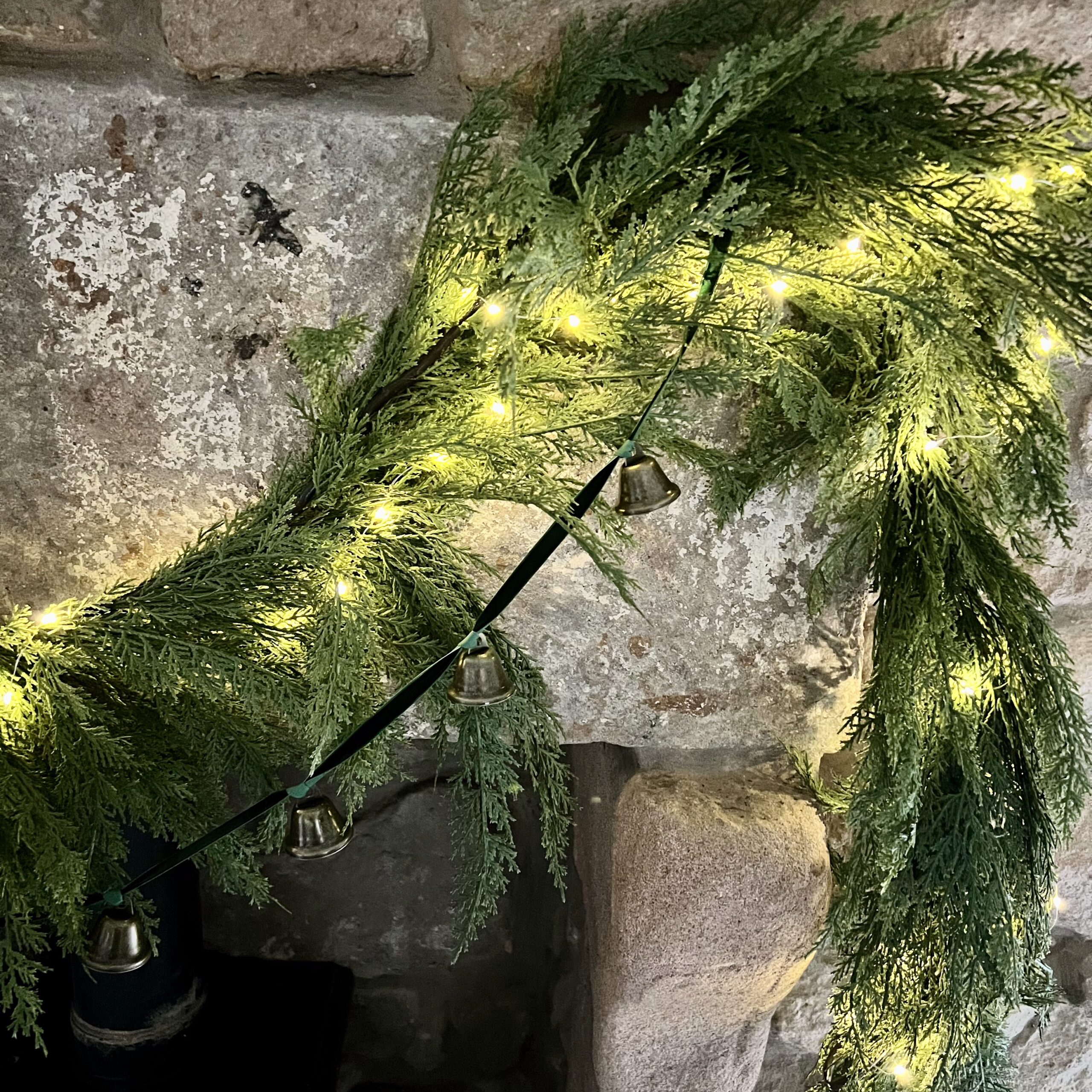 Add a touch of timeless festive charm to your home with our handmade deep green velvet vintage bell garland. Measuring approximately 1.4 metres, this beautiful piece features 10 individual vintage-style bells, each with a lovely, working bell ring that brings gentle, nostalgic Christmas magic to any space.